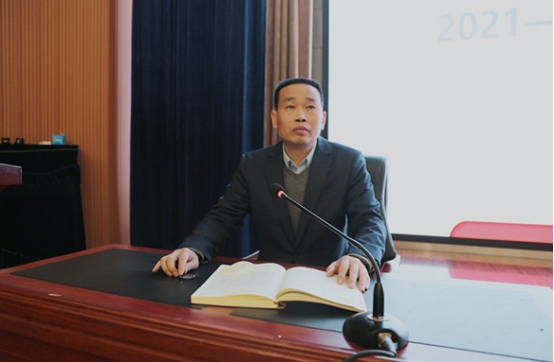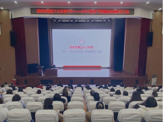 中原网讯(赵文源)2月14日上午,郑州市第五十八中学在博雅报告厅召开2021——2022学年第二学期全体教职工大会,会议由学校党委书记刘斌主持,全体教师参会。会上,七位副校长分享了新学期各部门工作计划,董震校长对本学期的重点工作进行了部署安排。